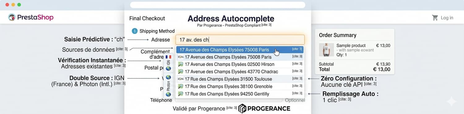 Offrez une expérience d’achat fluide, moderne et professionnelle tout en sécurisant vos données d’adresses.