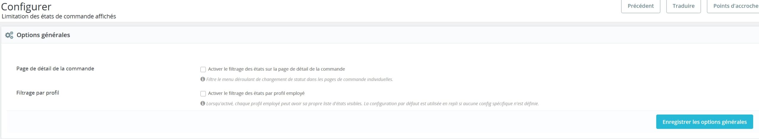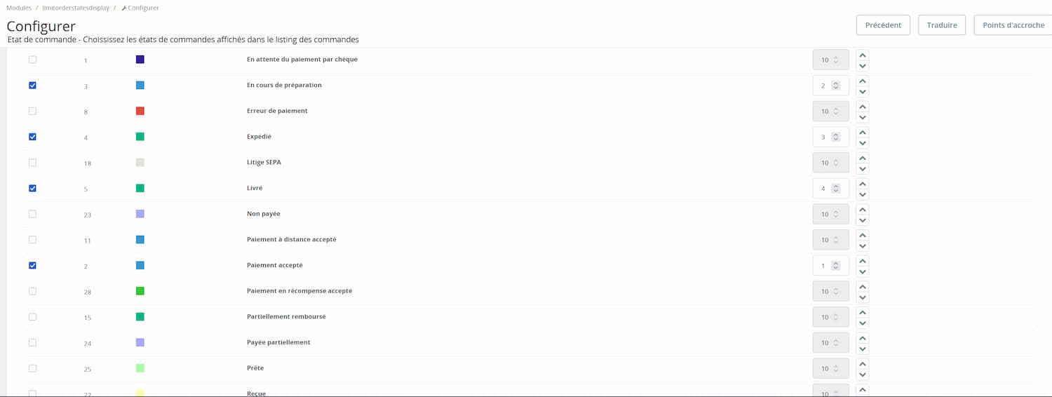 Depuis la configuration du module, vous sélectionnez les statuts à afficher et définissez leur ordre.